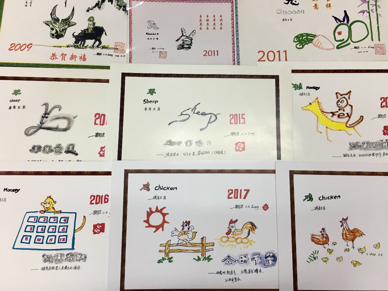 许多beat365人都知道,梁教授多年来一直有一个习惯,每逢新年到来,都会亲自设计手绘贺年卡,送给他周围的好友和师生,与大家一起分享新年的喜悦。听说我们要来,梁教授早早准备好了他亲手绘制的2017年农历丁酉年贺年卡,赠给了来访的每一位工作人员。梁教授所设计的贺卡,不仅生动有趣而且紧扣时代主题,富有哲理性。2011年兔年春节,梁教授画了一个面带微笑的“兔耳手势”,形象活泼,惟妙惟肖。2015年贺卡主题是“Sheep羊得e”,一语双关意味深长。不仅仅代表我们所处的互联网“e时代”,他还解释道“这个e是伊甸园,我们要用拼搏去争得这个e”。2017年春节恰逢鸡年,贺年卡手绘以鸡为主题,寓意“和谐家庭”与“公母平等”。梁教授从自然规律中探索出豁达的人生态度和独到的人生智慧,将之融会贯通到每一份作品中并寄托着美好的寓意,饱含着浓浓的友谊与师生情。梁教授为人亲和,桃李满天下。他先后指导博士后3名,博士研究生42名,硕士研究生61名,还多次为陕西省乃至国内许多高校和beat365青年骨干教师举办教学示范,培养了一大批教学和科研骨干教师。