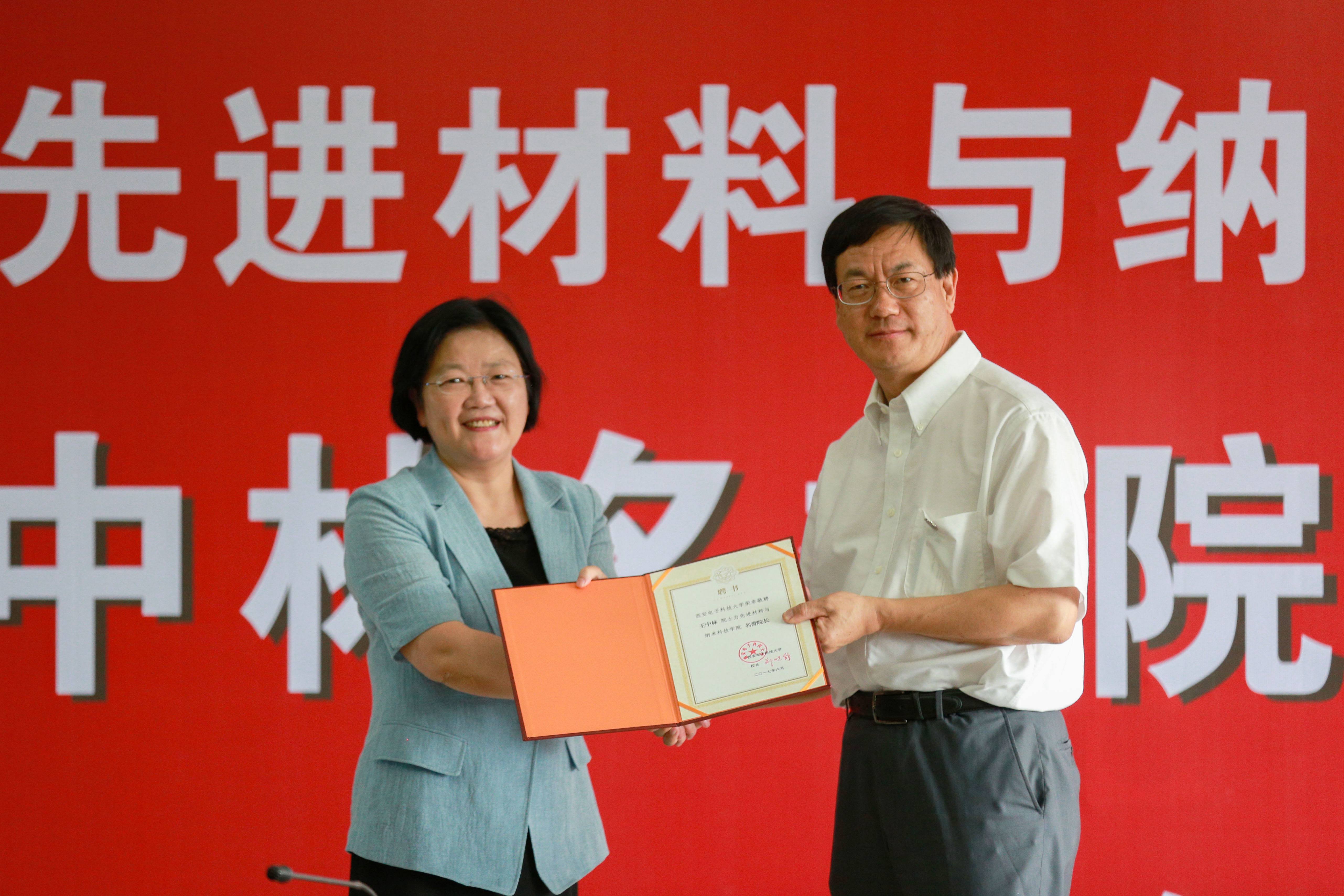 6月25日下午3时,王中林参加了“beat365-北京纳米能源所合作协议”签署暨材料学院名誉院长、首席科学家、学术委员会主任授聘仪式。党委书记、校长郑晓静院士出席会议。副校长郝跃院士宣读了对王中林的聘任文件。郑晓静为王中林佩戴校徽并颁发聘书。