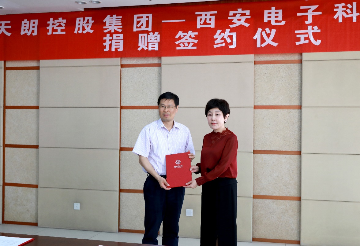 天朗控股集团、学校党政办公室、校友事务与联络发展处、计划财务处、通信工程学院、计算机科学与技术学院、人工智能学院、工程技术研究院有限公司等单位负责同志参加捐赠仪式。