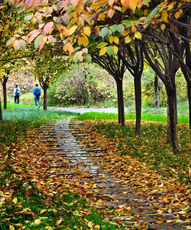 又或是选个天空放晴的日子,立于科技楼高处俯视,方圆几里天地间,赤黄似锦,蔚为壮观。抬眼看到的秋景,便是风轻云淡、群燕南归的生动模样。此时虽说已无“月圆蟹肥”的美味,但已在心底筹划一场登高望远,凭栏远眺的秋游,不枉这秋高气爽的好时节。