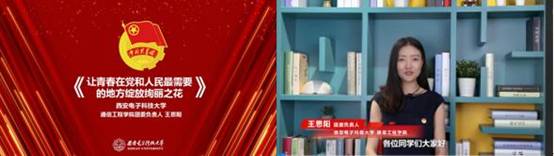 通信工程学院团委负责人王思阳以《让青春在党和人民最需要的地方绽放绚丽之花》为题,以视频为主要教学形式,她鼓励青年一代在义无反顾中沉淀更多“勇敢”,在无私奉献中淬炼硬核“担当”,在奋力拼搏中见证本职“坚守”,让青春在党和人民最需要的地方绽放绚丽之花。