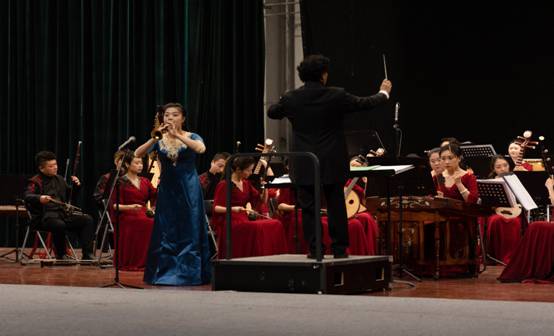 音乐会秉承着传统与现代、代表性与多样性相结合的原则,既有民族管弦乐《弓舞》《我的祖国》《芳华叙事诗》、唢呐独奏《百鸟朝凤》、女声独唱《远情》《爱我中华》等师生耳熟能详的经典曲目,也有民族管弦乐《彩云追月》《西部民歌主题组曲》《五彩的窑洞》、竹笛独奏《舞沙》《乌岭》等富有特色的民族曲目,还有《射雕英雄传》等互动性极强的返场曲目。在音乐会的最后,乐团还与现场观众演唱了《我和我的祖国》。