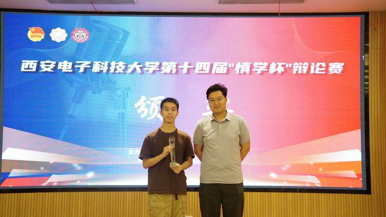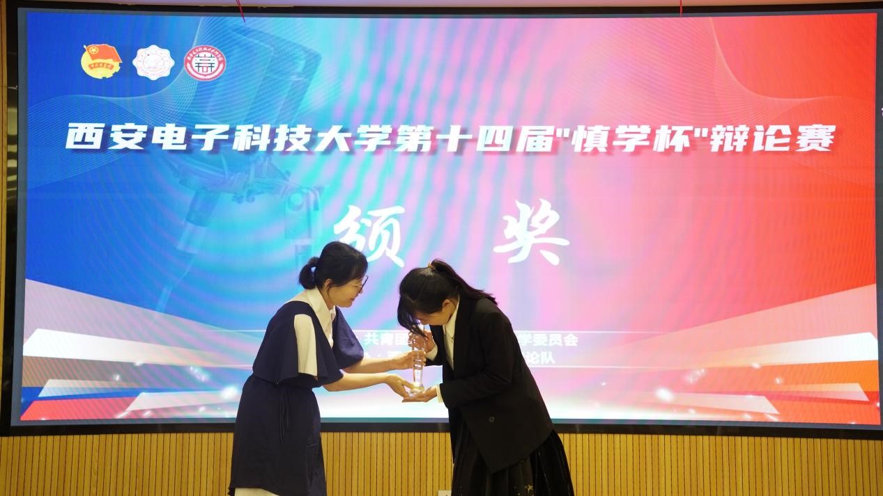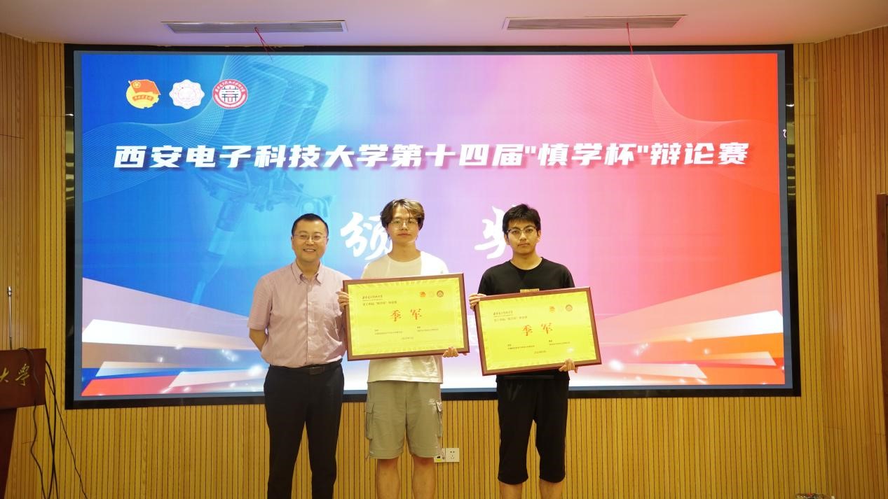 谢宇航老师为本届“慎学杯”辩论赛十佳辩手颁奖,获得本届“慎学杯”十佳辩手的同学有:空间科学与技术学院辩论队王博宇,经济与管理学院辩论队华文韬,电子工程学院辩论队闫瑭琦、孙皓阳,通信工程学院辩论队张泽奇、王炜栋,生命科学与技术学院辩论队胡钊源,人工智能学院辩论队黄柏特、陈轩,集成电路学部辩论队马欣文、叶汪洋、温己仟,外网联队黄梓霖