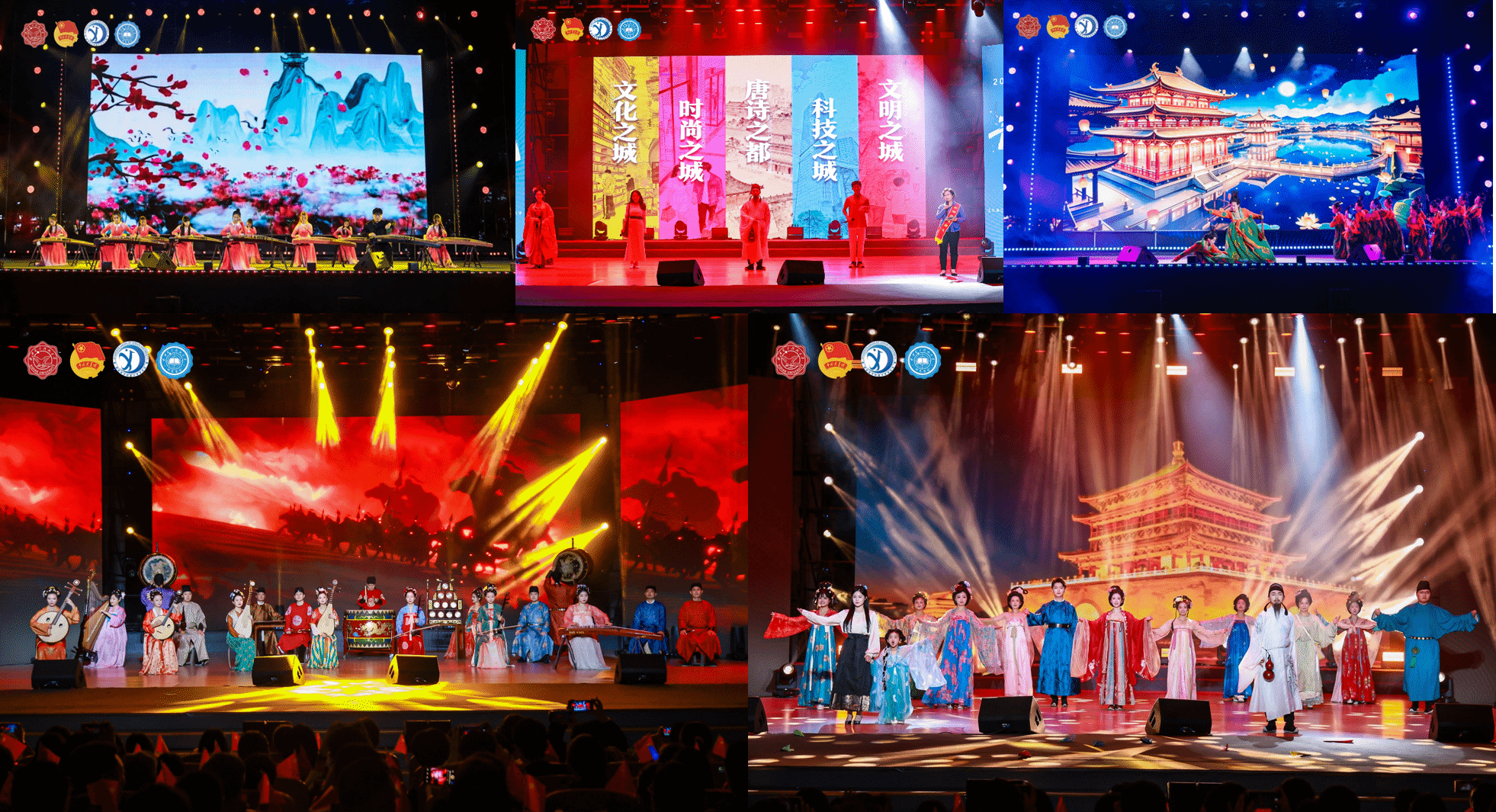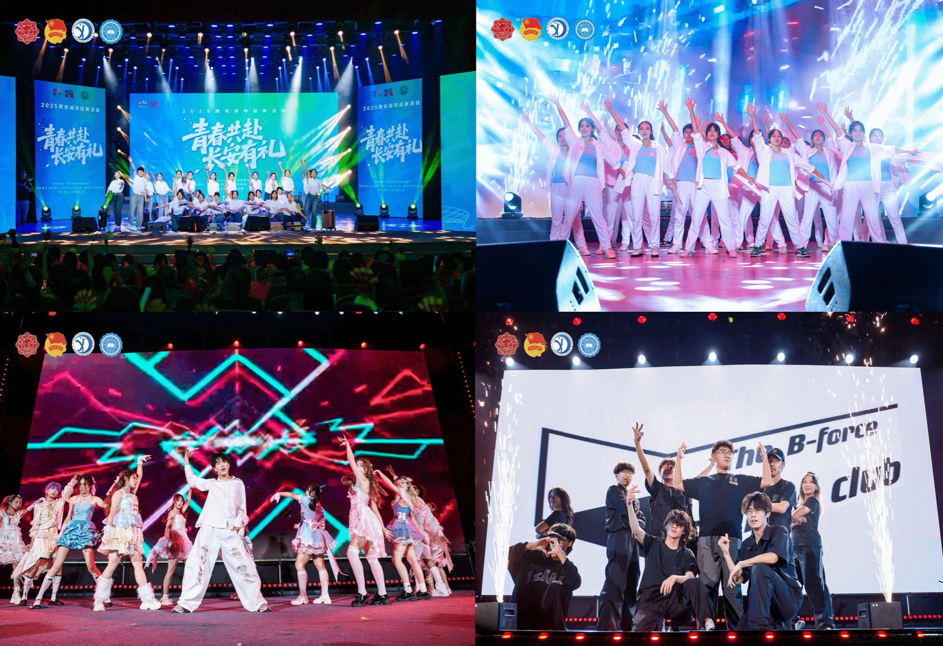 晚会现场,传统与现代精彩碰撞,开启一场跨越时空的对话。开场《大唐雅韵钟鸣鼓乐》西安外事鼓乐团以震撼鼓点穿越千年;《唐宫夜宴》大学生艺术团舞蹈团的同学们身着华丽服饰,以灵动舞姿完美融合古典韵味与现代舞台表现力;离退休教职工劲松艺术团带来的蒙古舞蹈《敬》用舒展的舞姿和深情的演绎,触动每颗心怀敬意的青春心房;《长相忆》《长安夜》秦腔传承人李梅和西安摇滚音乐人王建房合作用婉转的秦腔、澎湃的摇滚、真诚的旋律,连接起每颗向往长安的心;《西安人的歌》西安唱作人程渤智带动全场,气氛热烈引发大合唱;《西安礼遇》用不同维度的城市故事,完成最具仪式感的“入学第一课”,“孝老爱亲全国道德模范”丁水彬、西安市新文艺青年协会代表冯佳晨等城市榜样与新生共同演绎,让新生在beat365开启无限可能的青春之旅。