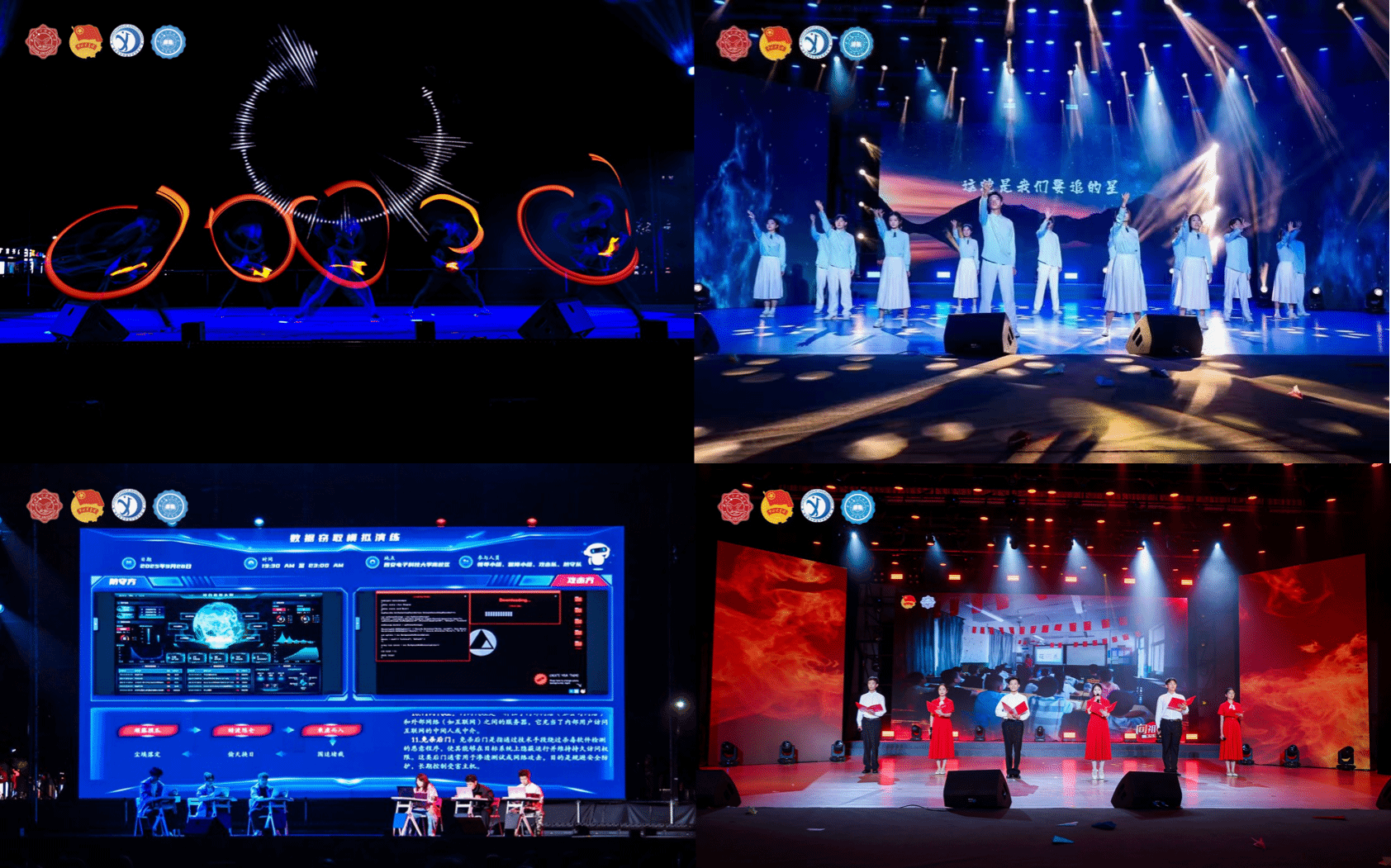 晚会聚焦青春与梦想,为新生们展示追逐梦想的广阔天地。《青春的誓言》社团成员们倾情演绎大学生活的无限可能。《向祖国报告》大学生艺术团朗诵与主持人团以朗诵形式展现beat365人矢志不渝的科技报国情怀。《夜空中最亮的星》大学生艺术团合唱团用温暖的歌声传递对科技工作者的敬意,激励同学们勇攀科学高峰。《网安攻防战》信息网络技术中心通过现场模拟钓鱼攻击事件,为同学们敲响网络安全警钟;陕西省魔术家协会理事屈捷与MiracleMiracle魔术社学生共同演绎魔术《奇迹时刻》《祝愿》,介四相声社带来的《打灯谜》将欢声笑语带给全场。夏天音乐社、大学生艺术团、TON乐团及校歌赛十强歌手轮番登台,从深情的乐队演奏到充满故事感的独唱,每首歌都引起共鸣,引发大合唱。来自IDOL舞社、B-Force街舞社、Shining动漫社的同学们,把年轻的朝气洒满舞台,感染着台下每一颗跳动的心脏,令台下尖叫不断。这些节目各具特色,共同构成这场主题鲜明、创意无限的迎新晚会,为新生们开启充满希望与梦想的大学生活新旅程。
