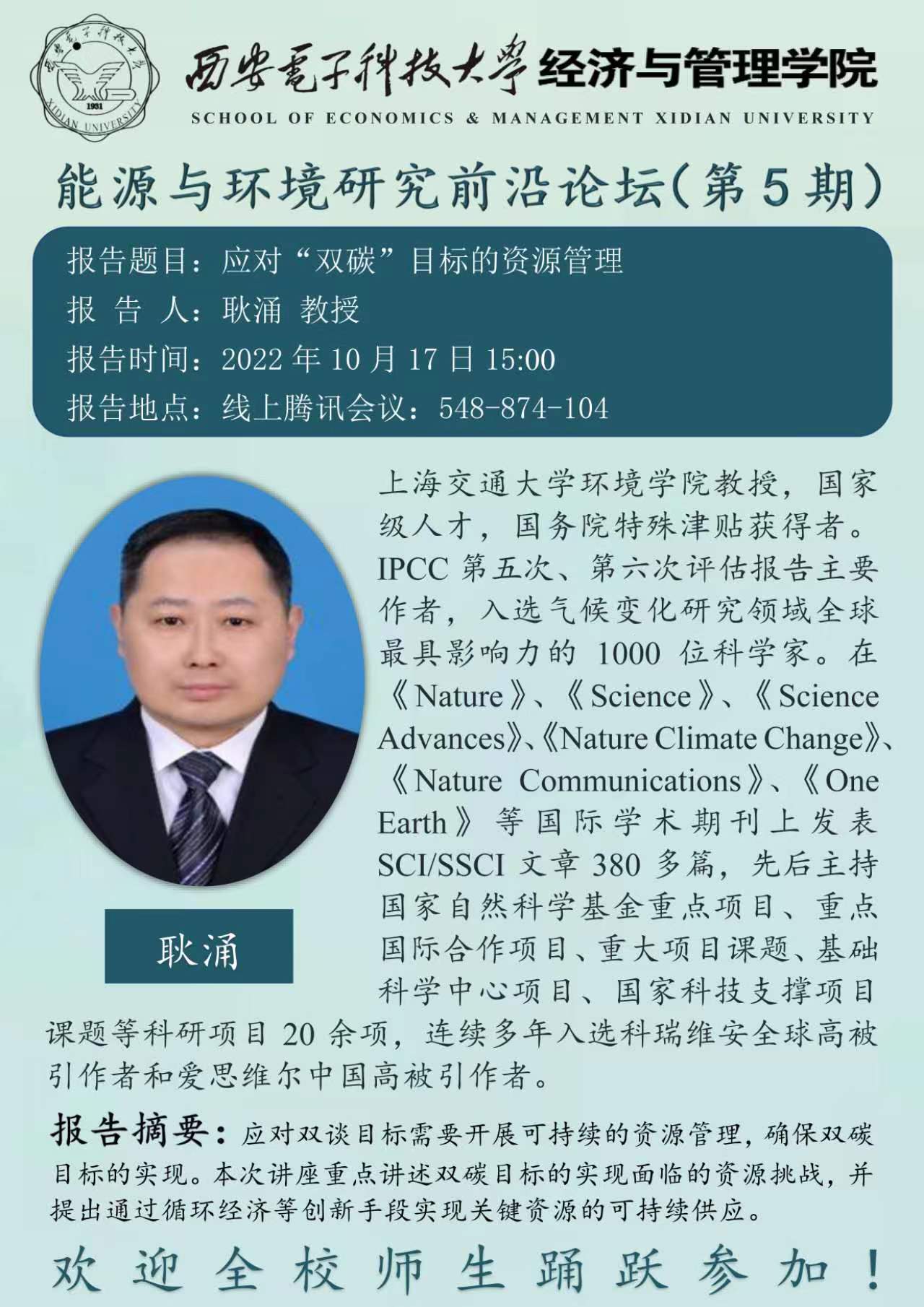 报告人:耿涌 教授